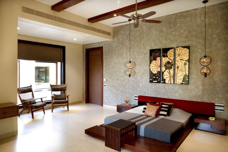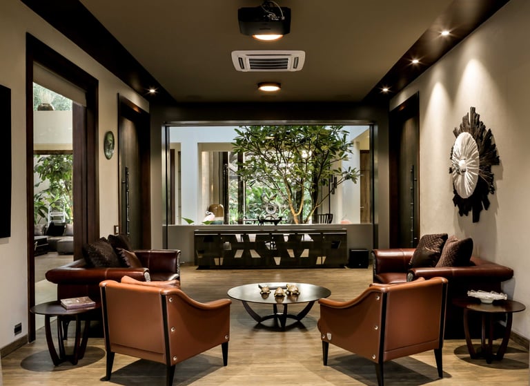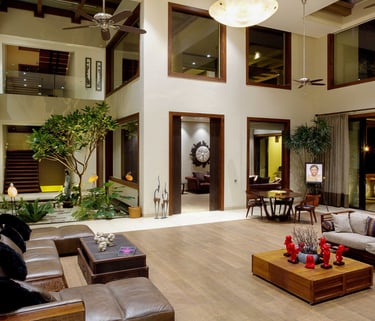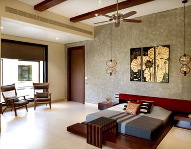 This 20,000 sq. ft. private villa in Alibaug has been designed for a discerning client with a deep appreciation for fine detailing, proportion, and natural materiality. The design language of the home exudes understated luxury through its rich use of wood, a warm beige palette, and refined craftsmanship that flows through every corner of the residence.