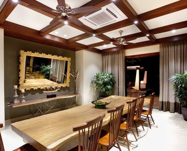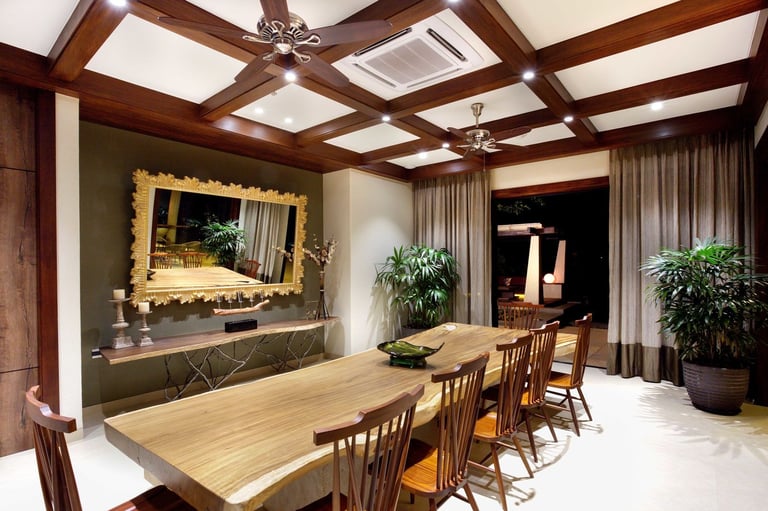 Attention to proportion and detailing ensures that every element, from the custom-designed furniture to the ceiling beams and fixtures, contributes cohesively to the overall spatial experience. This villa embodies a sense of serene sophistication — a perfect retreat that celebrates contemporary design infused with warmth, craftsmanship, and natural beauty.