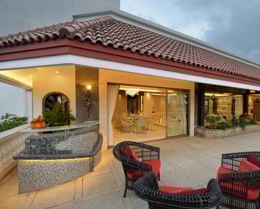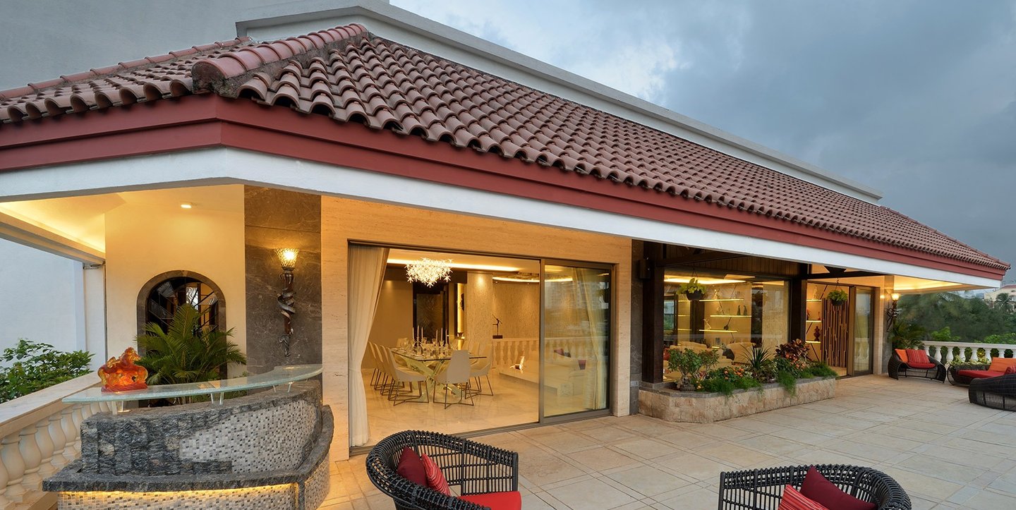 Nestled in the lush green surroundings of Lonavala, this private residence exemplifies understated elegance and refined simplicity. Designed with a sloping roof that blends harmoniously with the natural landscape, the home maintains a timeless architectural expression.