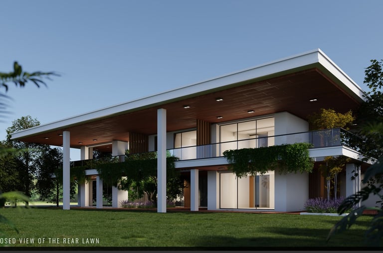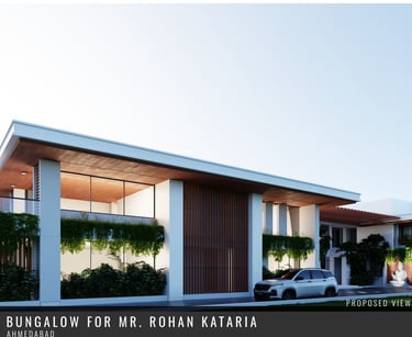 Overall, the bungalow combines simplicity and luxury — a perfect example of contemporary architecture that balances material contrast, proportion, and spatial openness to create an inviting, timeless home in the heart of Ahmedabad.